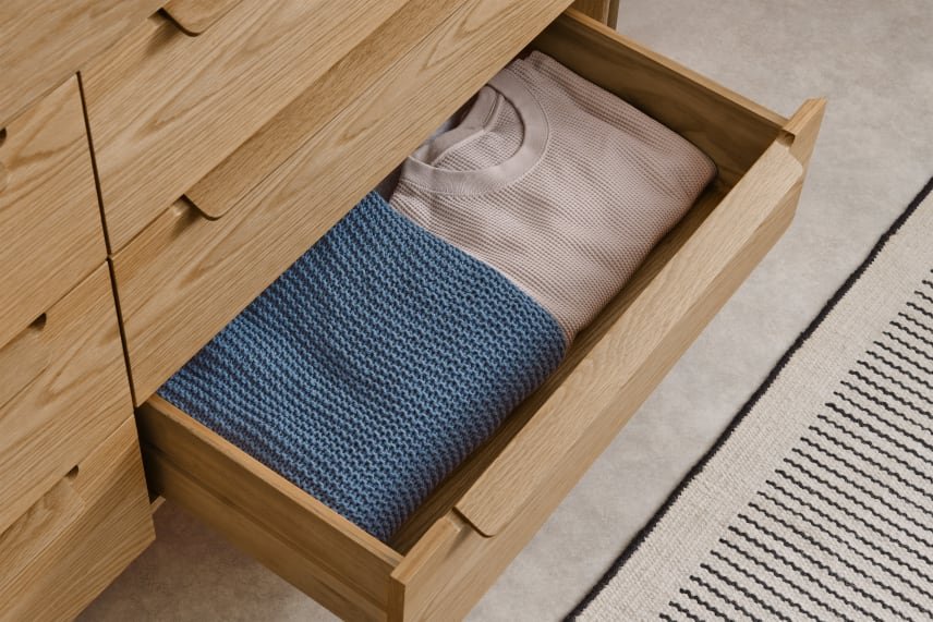 Modern 5-Drawer Wooden Chest - Light Brown Finish