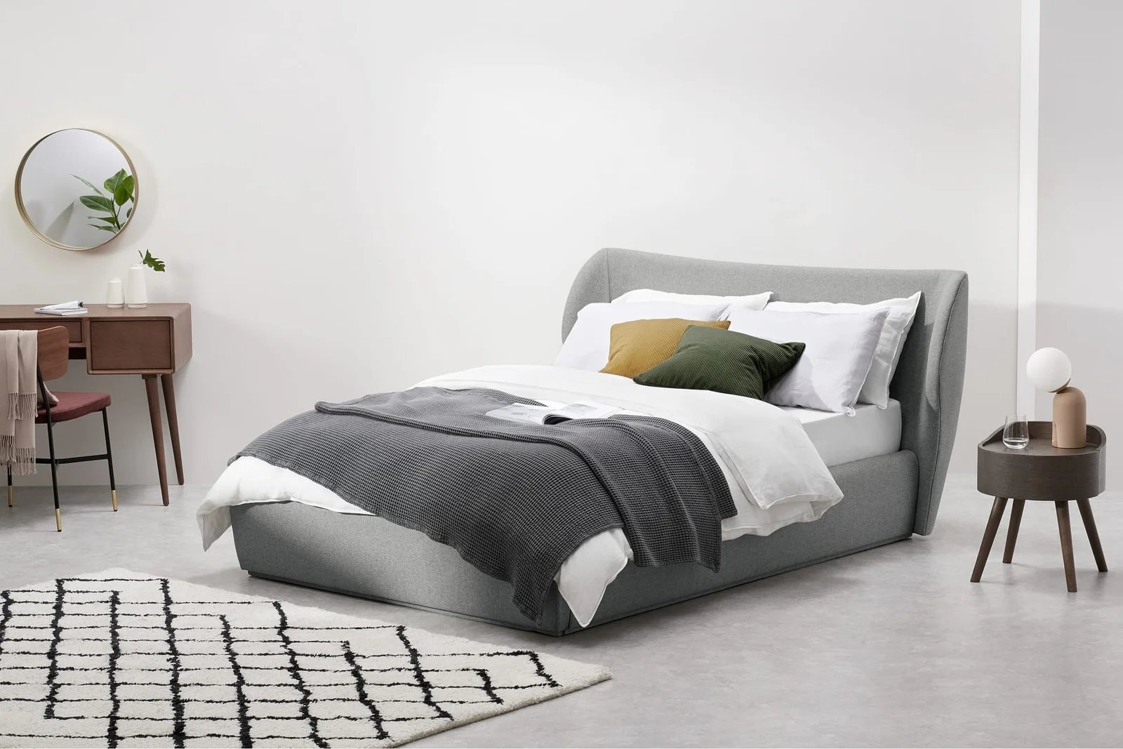 Modern Upholstered Bed with Curved Headboard